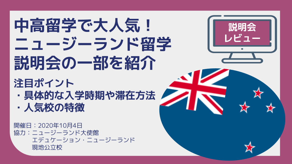 ニュージーランド中高留学説明会 2020年10月4日【協力】ニュージーランド大使館 Education New Zealand