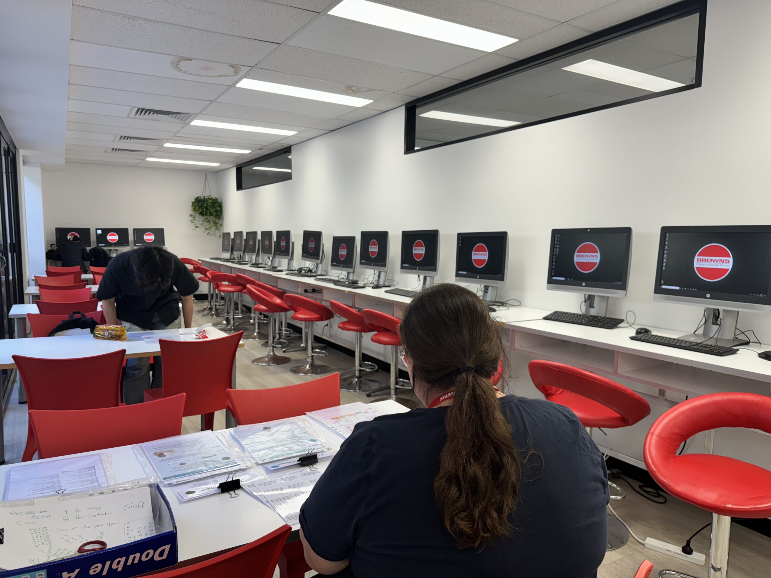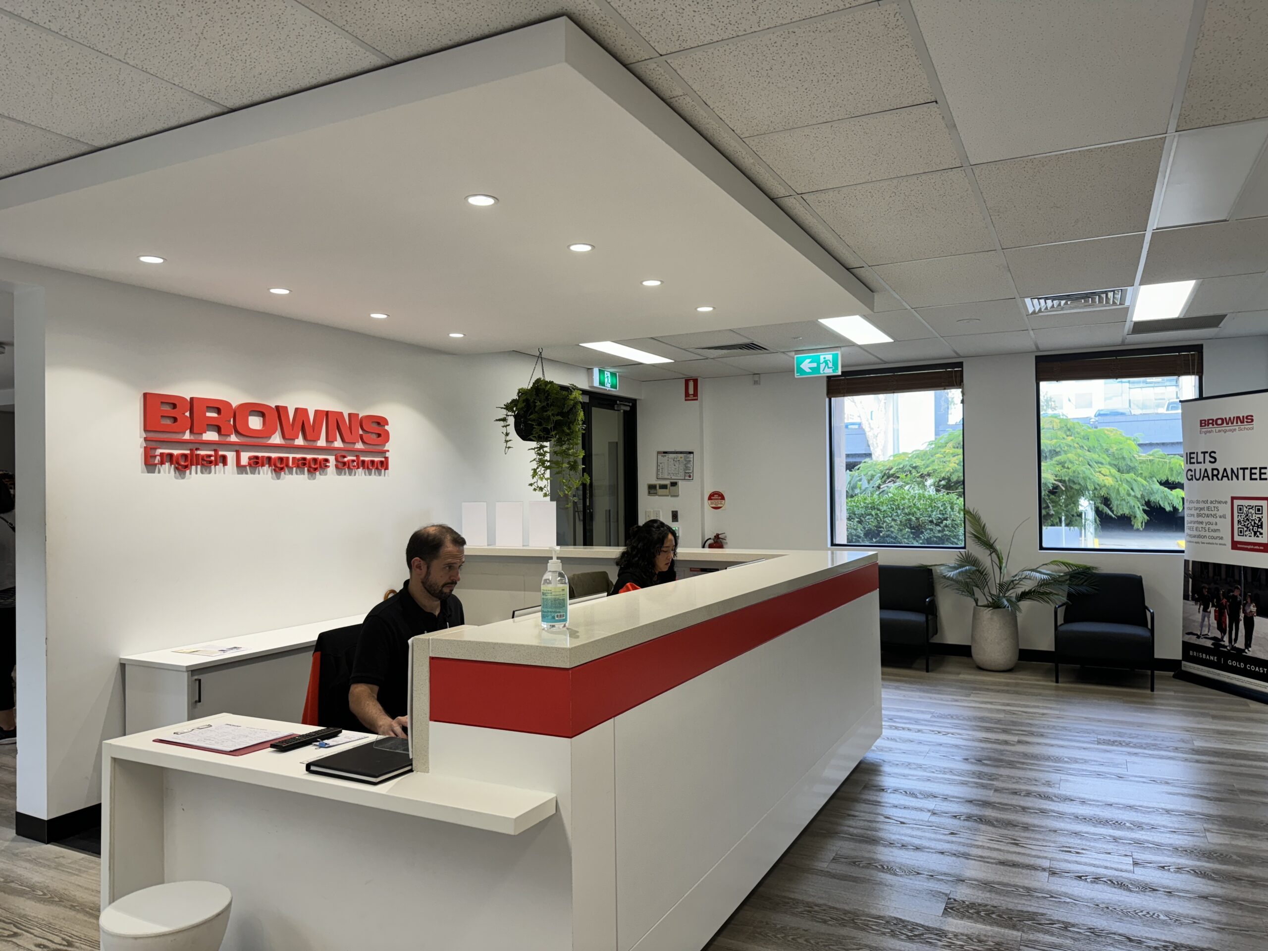 BROWNSのブリスベンキャンパスは、公共交通機関が整うブリスベンの中心街に位置し、セントラル駅より徒歩5分、ショッピングモールへも徒歩5分以内、バス停からは徒歩数分とアクセスも良好です。学生サービス用の受付があり、フレンドリーなスタッフがさまざまな質問に答えてくれます。ヘッドセットの付いた50台以上のコンピューターが所狭しと並ぶ共有スペースは留学生が宿題や各試験対策のため自習を行う落ち着いた空間となっています。各教室は教師と生徒、そして生徒同士のコミュニケーションがスムーズに進むように机やいすの配置が工夫されています。