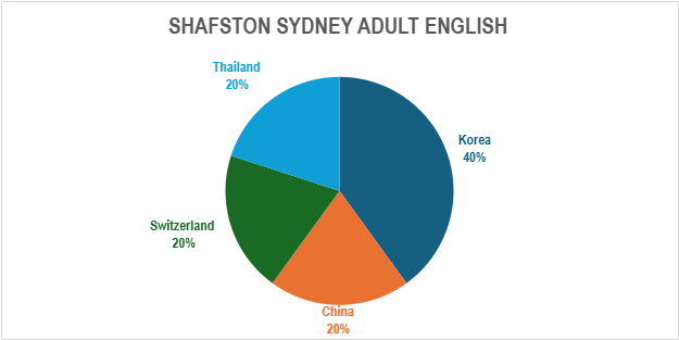 オーストラリアでは英語講師の経験と資格を12段階で評価しています。例えば新任の講師はレベル1、高度な資格を保持し、なおかつ9,000時間以上の指導経験を持つ講師はレベル12と評されます。Shafston International Collegeの講師の約70%が、このレベル12に属していることから、どれだけ教育に力を入れている語学学校かどうかがお分かりになるでしょう。