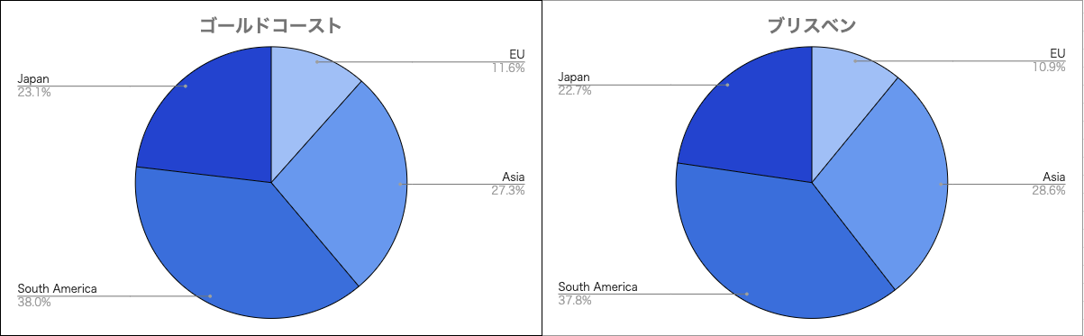 Imagine Education Australiaは国籍比率がよいという点も特徴です。ブリスベンキャンパス、ゴールドコーストキャンパスともに南米からの留学生が4割近くを占めており、また。ヨーロッパからの留学生も10〜12%在籍しています。日本人の割合は平均22〜23%となっており、、英語を使いながら覚えることができるとても良い環境が整っているといえるでしょう。