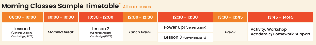 合わせて新しく導入されるPowerUp!プログラムでは、コミュニケーションスキルに特化した時間を増やすことが可能です。一般英語コースでのみで提供されるこのPowerUp!プログラムは、従来の授業に加えて、自分の弱点や将来の目標に合わせて選択科目を受講することができます。例えばビジネス英語やホスピタリティ英語など、生徒の”学びたい”に合わせた授業のカスタマイズすることができるので、アルバイト先探しや帰国後の就活や転職活動に活きる英語を身につけることができるでしょう。