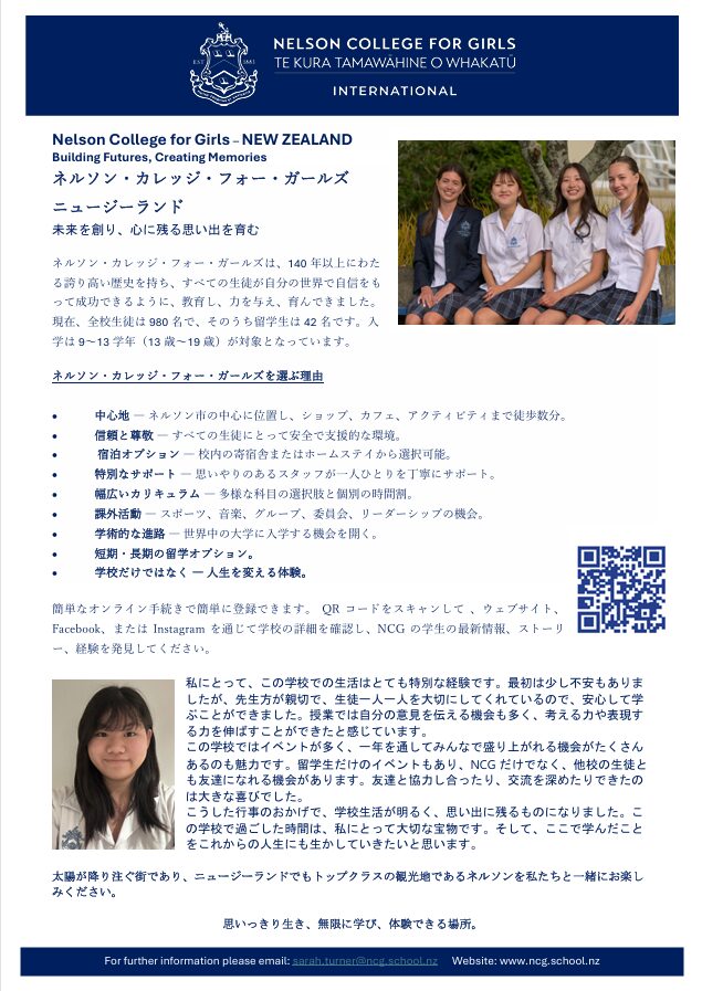 | 高校ホームページ | https://www.ncg.school.nz/ |