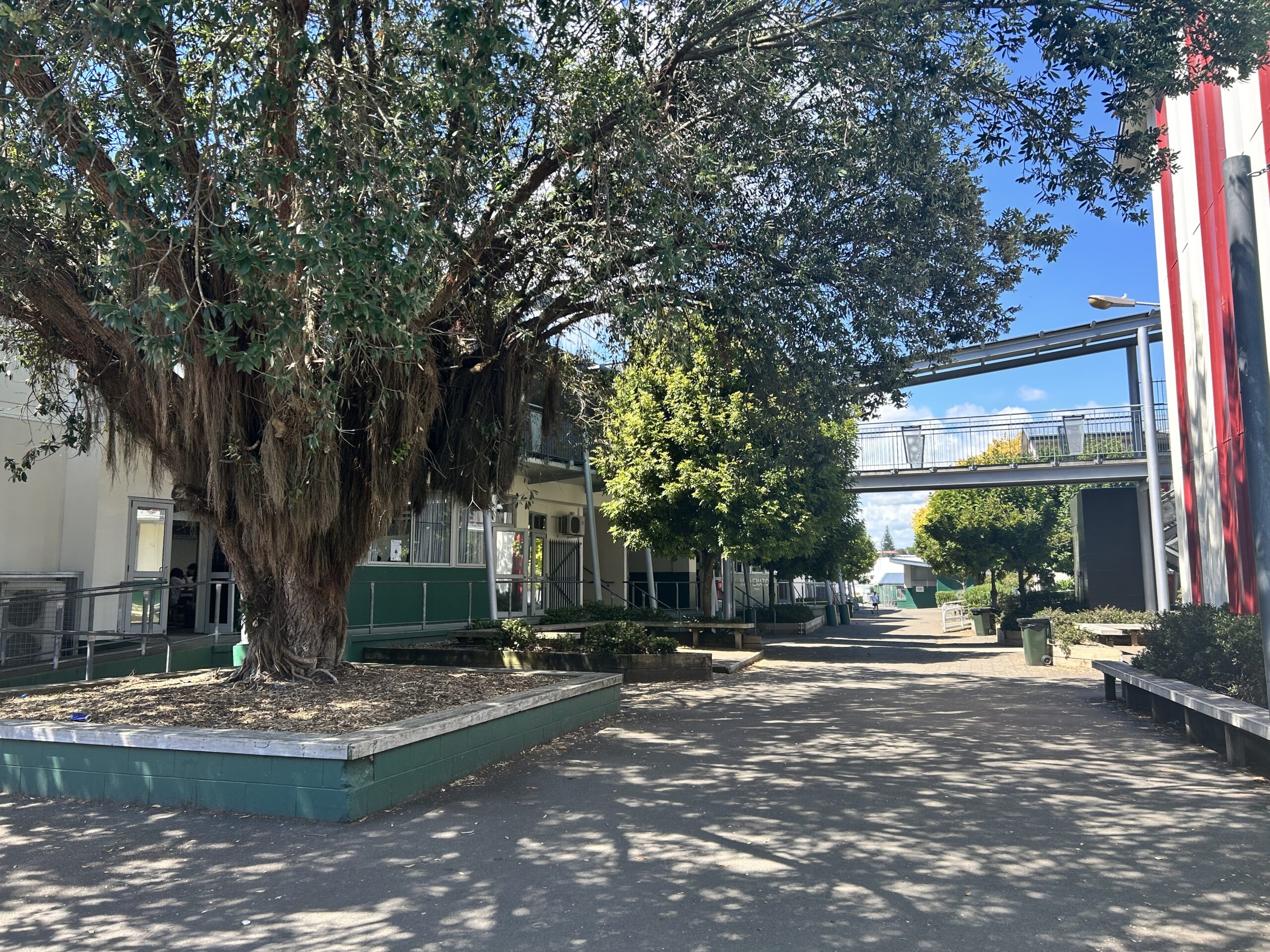 Otumoetai Collegeは受講する科目によって教室の建物が変わります。ニュージーランドの学校は、広々とした敷地内の中に1−2階建ての建物がいくつも広がっています。Otumoetai Collegeのキャンパスは、各建物の外壁に科目名が描かれており、どこの建物へいどうすればいいかは一目瞭然です。また、教室のほかにもスポーツグラウンドや図書館がとても広く構えられており、スポーツも勉強もどちらも集中して取り組める環境です。