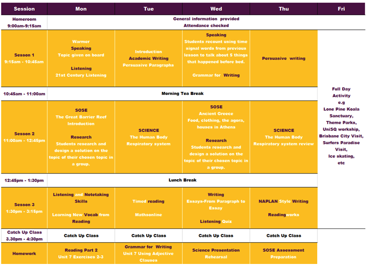 クィーンズランド州内の中学校・高校への入学を目指す12歳〜17歳を対象とした「進学準備コース」です。 現地の学校の授業についていくために英語学習だけでなく、理科や数学、社会などの科目を英語で学ぶための基礎スキルや、レポートの書き方、プレゼンテーションの方法を学びます。カリキュラムは現地校の学習内容を反映しており、現地校進学後に欠かせないアカデミック・スキルを徹底的に習得します。期間は個々の英語レベルに応じて2週間から30週間まで柔軟に設定できます。