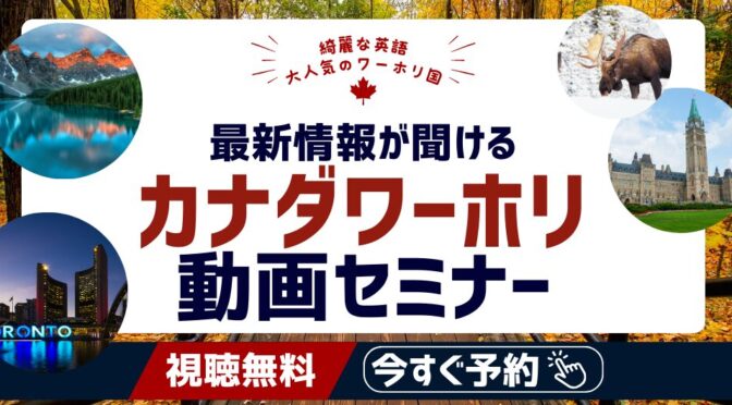 2回目の申請も可能に!大人気、カナダワーホリの特徴に加え、仕事内容や給料、生活事情など皆さんが気になるご質問にお答えします。視聴期間中ならいつでも・何回でも繰り返し視聴可能!いますぐチェック。...