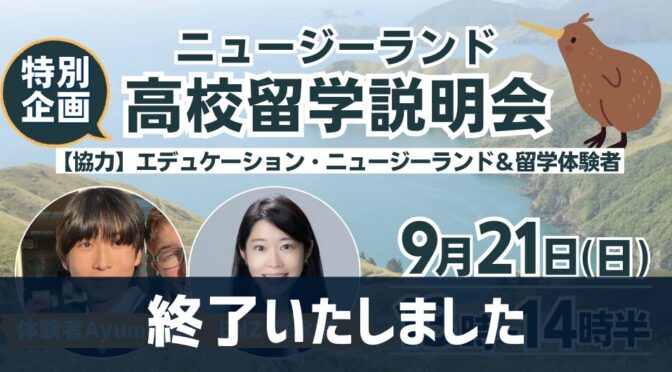 新学期を迎え、新たに取り組みたいことや将来の進路を考えている方も多いのではないでしょうか。そこで中高生の方に、この春休み中に情報収集として活用いただけるニュージーランド中高留学動画セミナーをご案内いた...